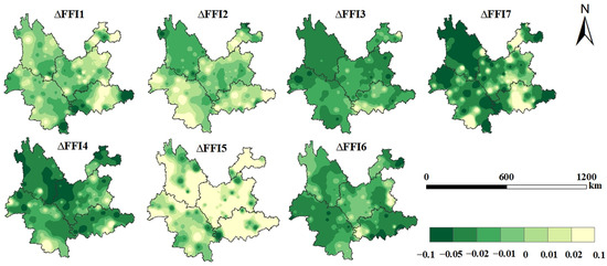 The dynamic FF index is obtained by using the difference between two adjacent years on the basis of the static forest fragmentation index, and the specific formula is shown below: