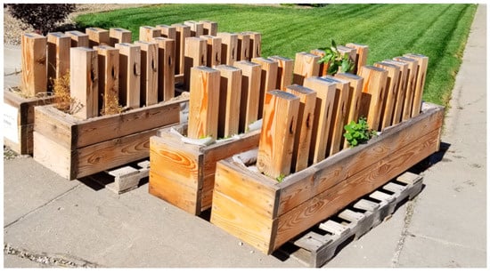 Matched pairs of treated blocks containing the same treatment were buried in commercially obtained soil to a depth of 406 mm (16 inches) at sites located outside of Phoenix, AZ, USA, and Colorado Springs, CO, USA. The Arizona site is located in a hot dry climate which receives an average of 203 mm (8 inches) of rainfall annually, while the Colorado site averages 483 mm (19 inches) of rainfall annually. The Colorado site also received supplemental moisture throughout the year to maintain below-groundline moisture contents at or above the fiber saturation point. The Colorado site was also subjected to sub-freezing temperatures for about four months of the year. The blocks were installed in May of 2018 and harvested for analysis 13 months later (Figure 2).