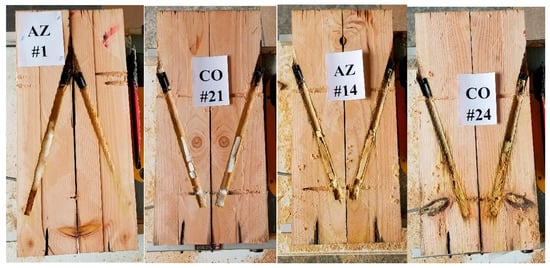 - Konkler, M.J.; Cappellazzi, J.; Love, C.S.; Freitag, C.; Morrell, J.J. Performance of Internal Remedial Treatments on Douglas-Fir Poles: A Large-Scale Field Trial. For. Prod. J. 2019, 69, 289–304. [Google Scholar] [CrossRef]