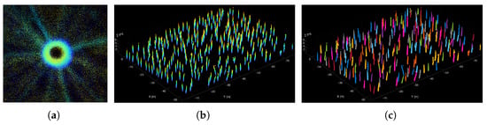 where α is a coefficient representing the classification intensity and α ( 0 , 1 ) . If the value of α is too large, it will result in more canopy point clouds in the trunk extraction results. If it is too small, it will lead to the loss of some surface point clouds of the trunk. The extracted trunk point clouds are shown in Figure 7b. After the trunk point clouds are extracted, the fast DBSCAN clustering algorithm is applied to further segment the extracted trunk point clouds into individual trunk point clouds.
