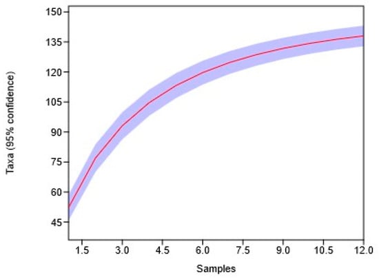 The curve is close to a plateau, indicating that most species have already been identified in the current analysis of experimental samples (12 samples). Further increases in the number of samples will likely lead to only a slight increase in the total number of species. Thus, the saturation curve ensures that the completed sample volume is sufficient to represent the bulk of the species diversity of the communities studied, but also indicates the possibility of identifying a small number of additional species with an increase in the number of samples (Figure 4).