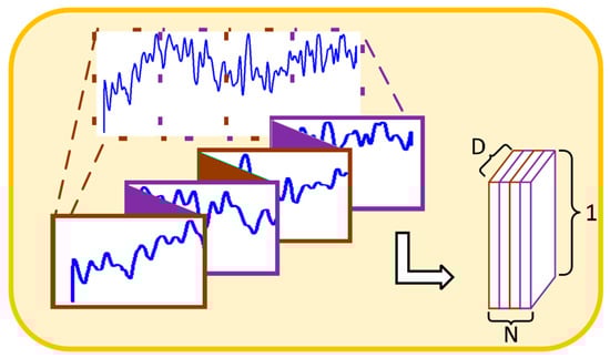 Figure 4. Patch embedding layer.- The patching method uses the sliding window method, which unfolds each input univariate time series X1D through a sliding window of length P and step size S. The overlap length between neighbouring chunks is P − S, so that the final number of patches N = (L − P)/S + 2 for a one-dimensional time series of length L.