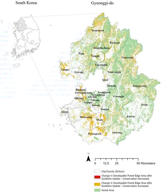 Area of developable forest edges in Gyeonggi-do (decreased under new guidelines).