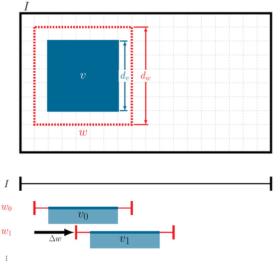 Voting strategy used in the pseudo-labeling process to generate pre-training data for . In this approach, multiple predictions per pixel are made by applied to smaller crops of the 1024 × 1024 UAV images . These predictions are aggregated using a voting strategy to improve the accuracy of the pre-training dataset. The stride defines the shift between consecutive windows, ensuring a specified overlap ratio between them, calculated using Equation (1). The size of the voting patch determines the extent of each individual prediction within the sliding window. For instance, in the bottom part of the figure, we can see that some pixels are receiving two votes, and .