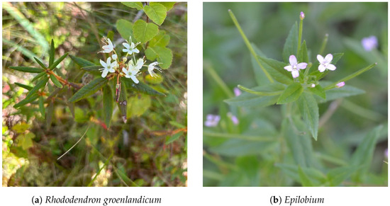 Additionally, the most significant confusion in our pseudo-label generation approach appears to be between Rhododendron groenlandicum (Bog Labrador Tea) and Epilobium (Willowherbs), as is visible in Figure 13. This issue arises mainly because of the overhead viewpoint, which contributes to difficulties in distinguishing between certain species within the genus Epilobium (Willowherbs) and Rhododendron groenlandicum (Bog Labrador Tea), as shown in Figure 20.