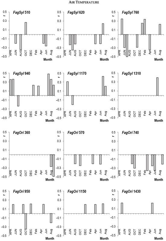 - Mousavisangdehi, A.; Oladi, R.; Pourtahmasi, K.; Etemad, V.; Koprowski, M.; Tumajer, J. Higher Temperatures Promote Intra-Annual Radial Growth of Oriental Beech (Fagus orientalis Lipsky) in the Humid Hyrcanian Forests. Trees—Struct. Funct. 2024, 38, 1569–1580. [Google Scholar] [CrossRef]