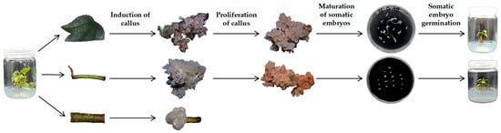 - Martínez, M.; Corredoira, E. Recent Advances in Plant Somatic Embryogenesis: Where We Stand and Where to Go. Int. J. Mol. Sci. 2024, 25, 8912. [Google Scholar] [CrossRef]