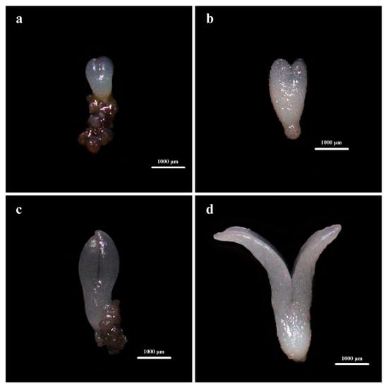- Zou, S.; Yao, X.; Zhong, C.; Li, D.; Wang, Z.; Huang, H. Recurrent somatic embryogenesis and development of somatic embryos in Akebia trifoliata (Thunb.) Koidz (Lardizabalaceae). Plant Cell Tissue Organ Cult. (PCTOC) 2019, 139, 493–504. [Google Scholar] [CrossRef]