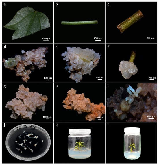 3.1. Different Explant Types Induced Callus in Three Genotypes of Hybrid Sweetgum