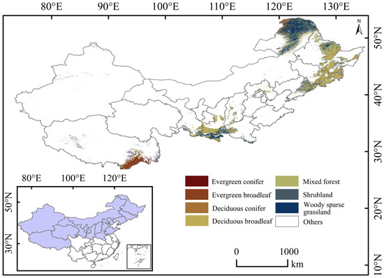- Xiao, X.M.; Boles, S.; Liu, J.Y.; Zhuang, D.F.; Liu, M.L. Characterization of forest types in Northeastern China, using multi-temporal SPOT-4 VEGETATION sensor data. Remote Sens. Environ. 2002, 82, 335–348. [Google Scholar] [CrossRef]