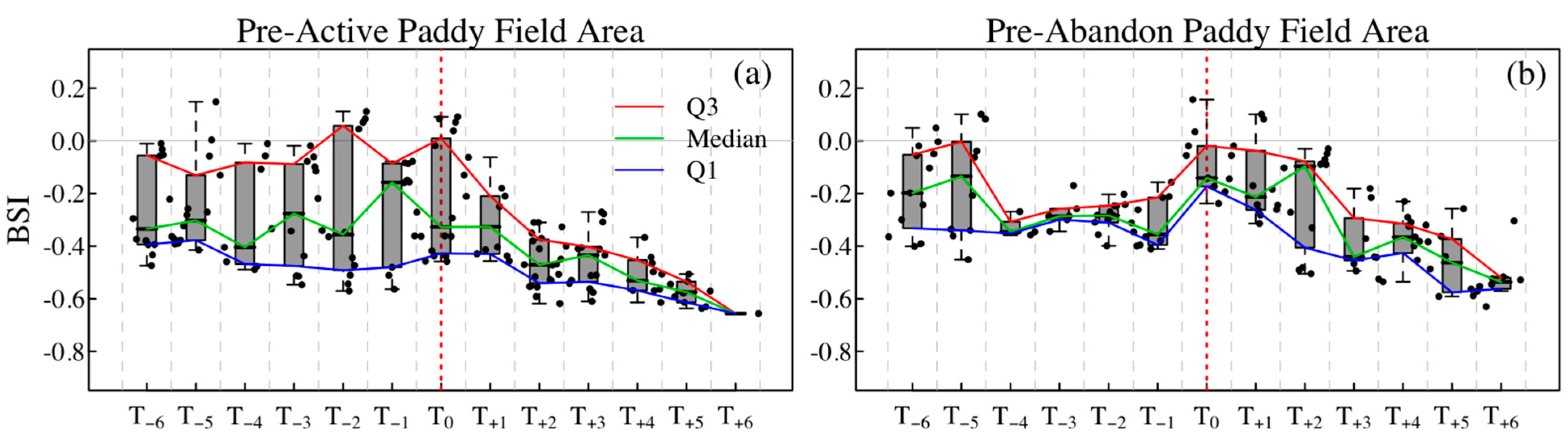 3.1. Time Series Analysis of Distribution Summary BSI Values