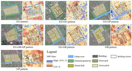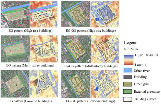 3.1. NPP Distribution Characteristics of Different Green Space Layout Patterns in Residential Blocks