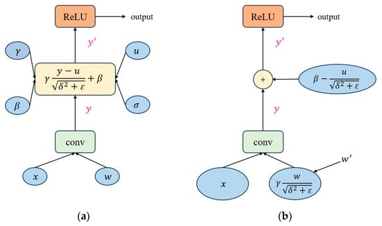 BN merge process. (a) Before BN merge operation; (b) after BN merge operation.
