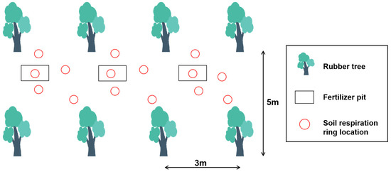 Schematic diagram of rubber plantation and soil respiration ring deployment.