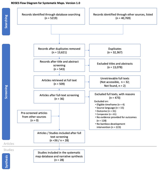 ROSES Flow Diagram [47] showing the search and screening process resulting in the systematic map.