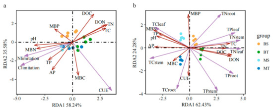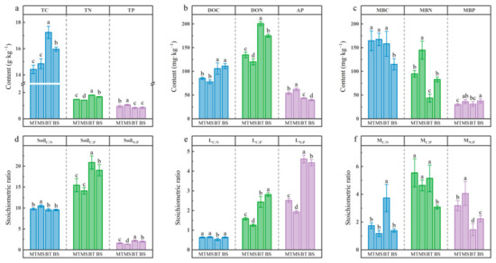 - Zhao, Y.; Liang, C.; Shao, S.; Chen, J.; Qin, H.; Xu, Q. Linkages of Litter and Soil C:N:P Stoichiometry with Soil Microbial Resource Limitation and Community Structure in a Subtropical Broadleaf Forest Invaded by Moso Bamboo. Plant Soil 2021, 465, 473–490. [Google Scholar] [CrossRef]