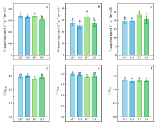 - Sinsabaugh, R.L.; Shah, J.J.F. Ecoenzymatic Stoichiometry and Ecological Theory. Annu. Rev. Ecol. Evol. Syst. 2012, 43, 313–343. [Google Scholar] [CrossRef]