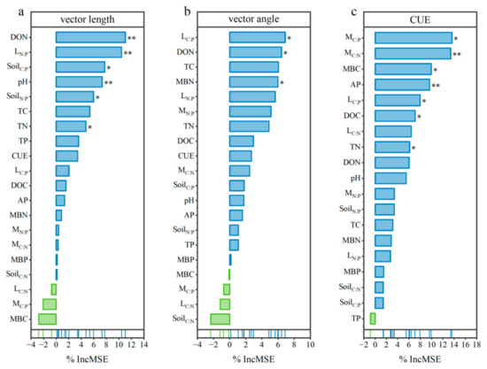 - Deng, L.; Peng, C.; Huang, C.; Wang, K.; Liu, Q.; Liu, Y.; Hai, X.; Shangguan, Z. Drivers of Soil Microbial Metabolic Limitation Changes along a Vegetation Restoration Gradient on the Loess Plateau, China. Geoderma 2019, 353, 188–200. [Google Scholar] [CrossRef]