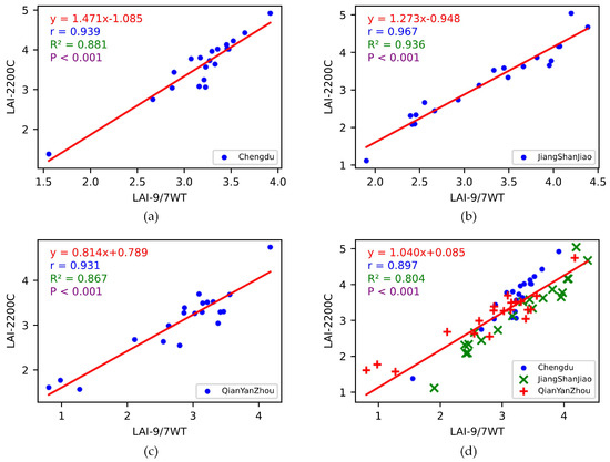To validate the effectiveness of the proposed inversion method, vegetation canopy images were collected synchronously using the LAI-2200C in three forest experimental areas from different geographic regions. The LAI values for 60 sampling areas were calculated using the proposed method and compared with the LAI-2200C measurements. The results show that the proposed method is highly correlated with the LAI-2200C measurements (r = 0.897, RMSE = 0.431), indicating that it has high accuracy under different environmental conditions and is a reliable LAI measurement method. As the technology continues to mature and expand, it is expected to have a profound impact on sustainable agriculture, ecological protection, and addressing climate change.