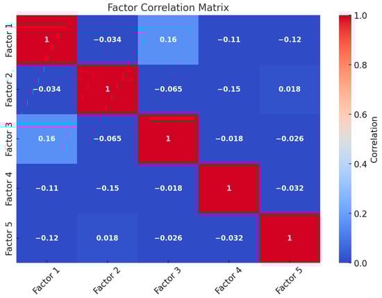 A heatmap for the factor correlation matrix (Figure 3) was created to show the correlations between the factors. This graphic makes it easier to evaluate the relationships between factors as positive or negative.