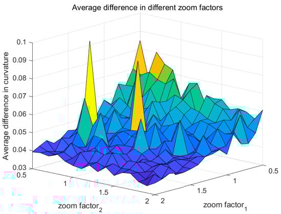 Figure 6. Distribution of curvature differences in the validation set with zoom factors. (The color changes from blue to yellow as the value increases).