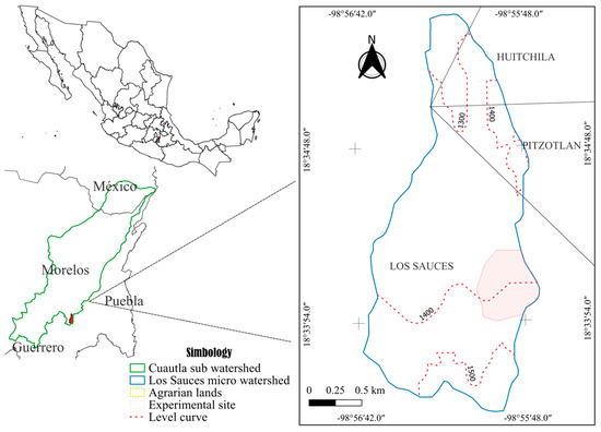 Location of the experimental site in the Los Sauces micro-watershed, Morelos, Mexico.