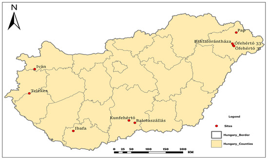 Black locust (Robinia pseudoacacia L.) is a hardwood species native to eastern North America and has been imported to Europe since 1601. All sub-Mediterranean and temperate climates have adopted it. It is drought-resilient and flourishes in regions with annual precipitation as low as 500–550 mm [4]. In Hungary, it is located in the center, northeast, south, and southwest of Trans Danubia. The first major black locust forests were planted at the beginning of the 18th century to stabilize the wind-blown, sandy soil [5,6]. After that, it was planted in several locations with varying soil characteristics [7]. It is a valuable tree, contributing to sectors of the economy and ecology [8,9,10].