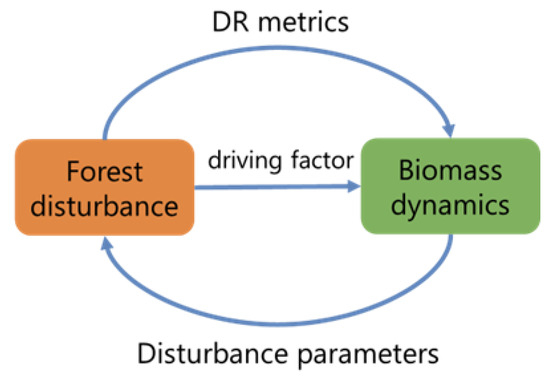 Forest biomass dynamics are strongly influenced by disturbance and recovery (DR) processes, such as logging, fire, and pest outbreaks. Integrating DR indices into Landsat time series can improve biomass change predictions. Pflugmacher et al. [44] demonstrated that extended Landsat time series (spanning 10–20 years) significantly enhanced biomass predictions for mixed conifer forests in eastern Oregon, USA. By reducing the root mean square error (RMSE) from 39.64 Mg ha−1 (35%) to 30.34 Mg ha−1 (27%) and increasing the explained variance (R2) from 0.68 to 0.82, this study highlighted that longer monitoring periods can capture the full range of forest dynamics, including disturbances and subsequent recovery, thus improving biomass prediction robustness.