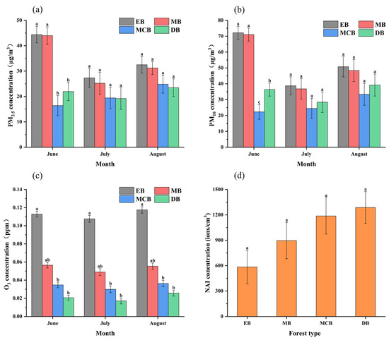 Jia, Z.; Zhou, R.; Jiao, J.; Pan, C.; Chen, Z.; Huang, Y.; Zhou, Y.; Zhou, G. Trends and Influencing Factors of Summer Air Quality Changes in Four Forest Types. Forests 2025, 16, 833. https://doi.org/10.3390/f16050833