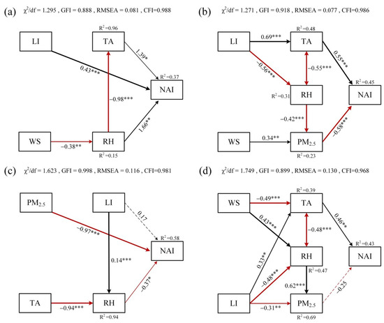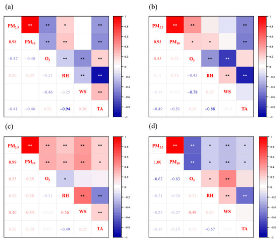 | PM10 | EB | Y = 753.213 − 4.173 *** × RH − 12.943 *** × TA + 31.12 * × WS | 0.601 | 0.001 |