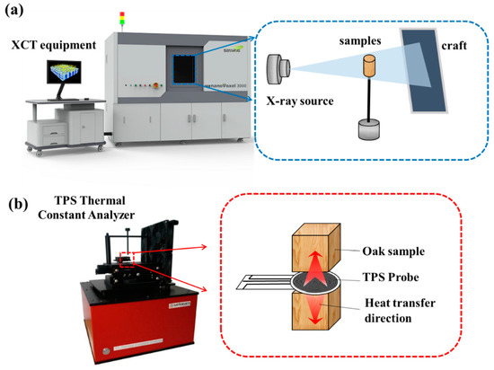 (a) XCT equipment; (b) TPS thermal constant analyzer and its testing procedure.