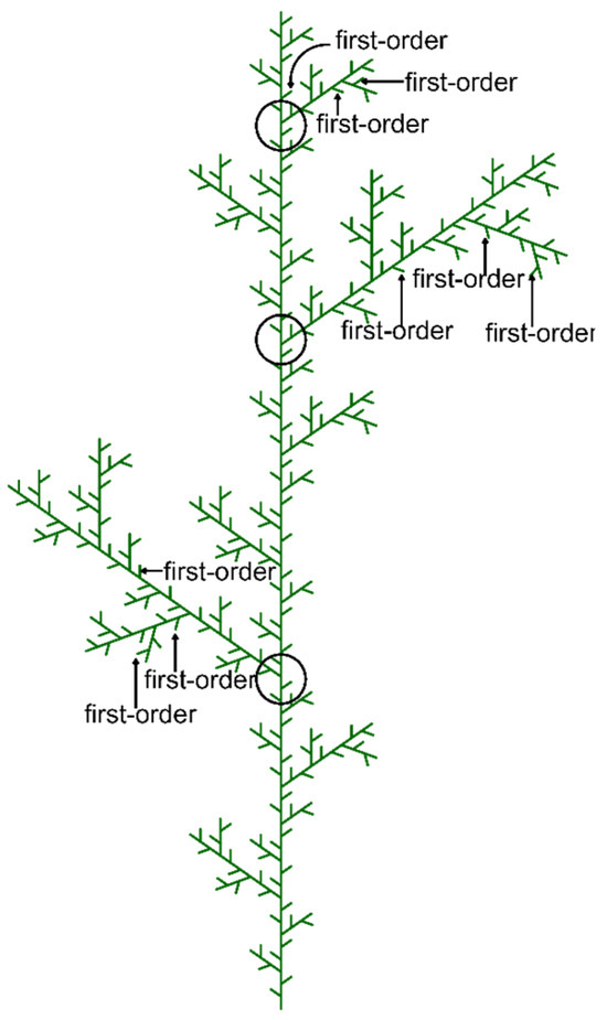 - Borchert, R.; Slade, N.A. Bifurcation Ratios and the Adaptive Geometry of Trees. Bot. Gaz. 1981, 142, 394–401. [Google Scholar] [CrossRef]