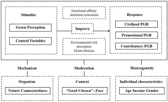 This study aims to deepen the understanding of the complex mechanisms driving urban residents’ pro-greenspace behavior and to provide practical insights for designing culturally informed environmental policies and promoting sustainable urban green space management. Specifically, we seek to address the following key questions: (1) Can an extended Stimulus-Organism-Response model (SOR), namely the Context-SOR (C-SOR), be developed to integrate both external contextual factors and internal affective factors into the analysis of pro-greenspace behavior? (2) How does residents’ green perception influence their pro-greenspace behavior? Does nature connectedness serve as a mediator in this relationship? (3) Within the specific context of Chinese culture, what is the moderating role of the concept of face? Which has a greater influence—face or green perception? (4) Are there behavioral differences among groups distinguished by age, gender, and economic income? Addressing these questions will enhance our understanding of the underlying drivers of pro-greenspace behavior and provide scientific evidence for policymakers and environmental organizations to foster active individual participation in environmental protection, thereby improving the long-term cultivation mechanisms for pro-greenspace behavior.