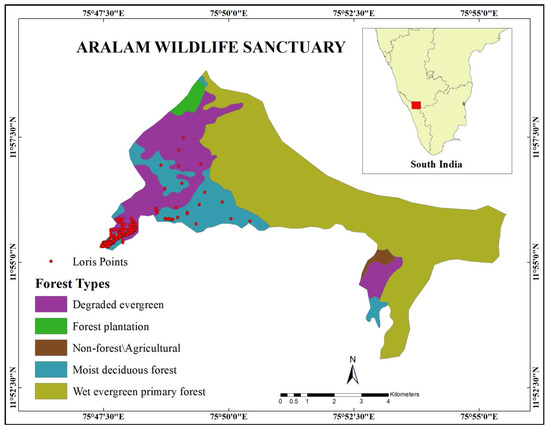 Chicago/Turabian StyleGnanaolivu, Smitha D., Joseph J. Erinjery, Marco Campera, and Mewa Singh. 2025. "Habitat Composition and Preference by the Malabar Slender Loris (Loris lydekkerianus malabaricus) in the Western Ghats, India" Forests 16, no. 6: 876. https://doi.org/10.3390/f16060876