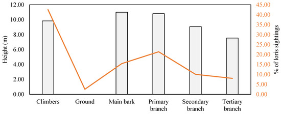 | Seasons/Time Duration | Height at Which the Loris Was Spotted (m) | Dry/Summer | Southwest Monsoon | Post-Monsoon |