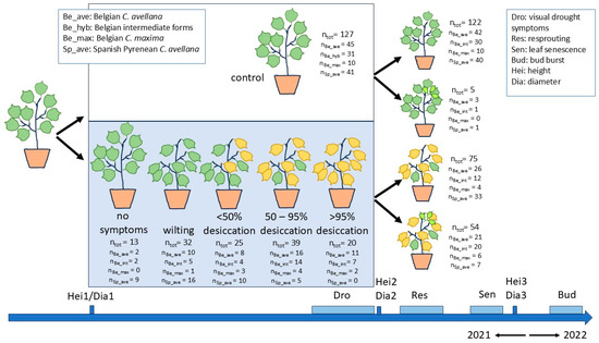 Vander Mijnsbrugge, K.; Pareijn, A.; Moreels, S.; Moreels, S.; Buisset, D.; Vancampenhout, K.; Notivol Paino, E. Summer Drought Delays Leaf Senescence and Shifts Radial Growth Towards the Autumn in Corylus Taxa. Forests 2025, 16, 907. https://doi.org/10.3390/f16060907