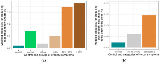 3.2. Development of Visual Drought Symptoms and Post-Drought Resprouting
