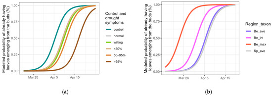 | Dro_wilting | −0.81 | 0.33 | −2.48 | 0.013 * | 1.62 | 0.49 | 3.33 | <0.001 *** |