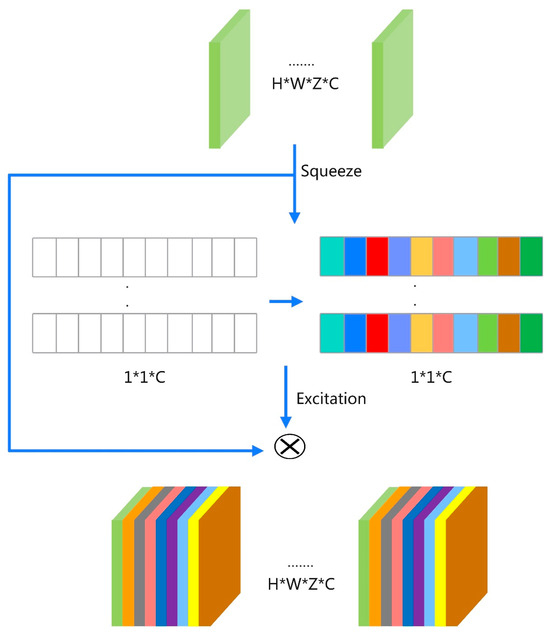 - In response to severe occlusions and lighting variations in forest environments, we introduce a channel attention mechanism—the squeeze-and-excitation (SE) module—during the cost volume regularization stage to enhance the network’s selective focus on critical features. The SE module adaptively recalibrates feature channel weights, thereby optimizing critical information within the cost volume while suppressing irrelevant or redundant features.