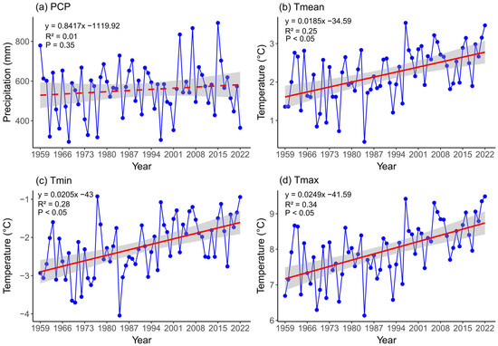 - Wang, Z.; Zhang, T.; Zhang, D.; Luo, T.; Wang, X.; Li, X.; Mao, H. Responses of Pinus sylvestris var. mongolica tree ring width to climate factors at different elevations in the Northern Greater Khingan Mountains. Dendrochronologia 2024, 83, 126166. [Google Scholar] [CrossRef]