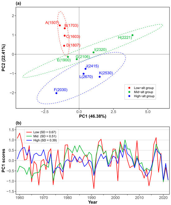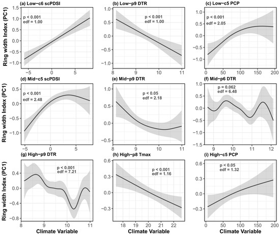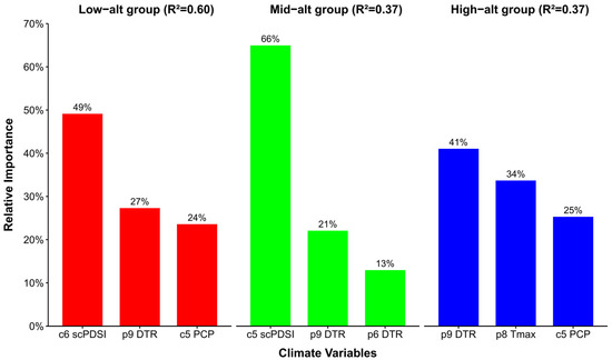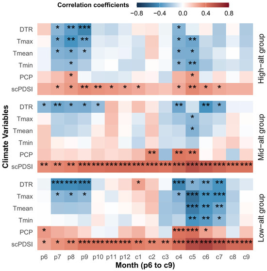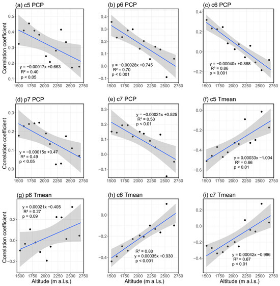 4.2. Altitudinal Variation in the Growth–Climate Relationships