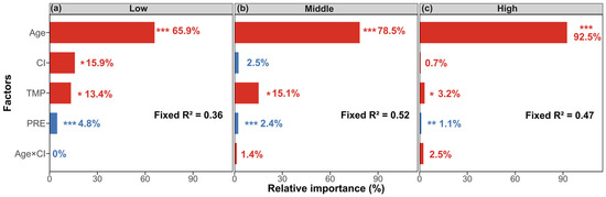 2.5. Analysis of the Relationship Between Competition and Radial Growth at Different Altitudes