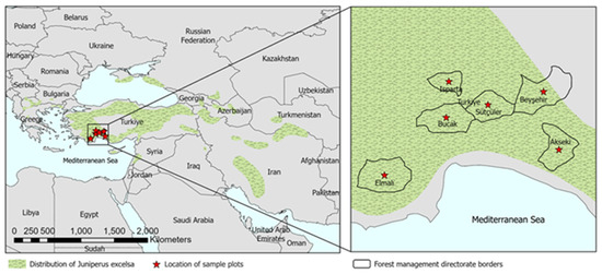 Juniperus is an economically and ecologically significant species in Türkiye, covering 1.6 million ha with a standing volume of 32.6 million m3 [1]. Juniper species are distributed commonly in the Taurus Mountains. Six juniper species naturally grow in Türkiye; among them, Crimean juniper (Juniperus excelsa Bieb.) is the most common and has great economic potential. The most significant distribution area of the species worldwide is Türkiye. Therefore, it offers several environmental benefits, including conserving biodiversity, water, and soil resources. Additionally, it serves as a source of essential oils used in Türkiye’s medical and cosmetics industries.