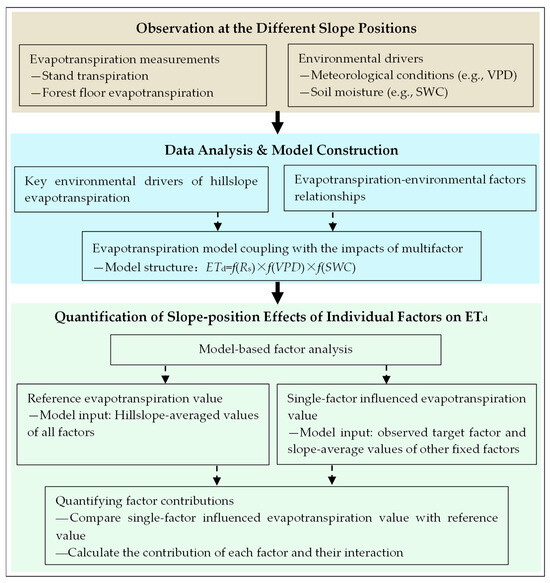 Flowchart of the methodology for determining the contributions of the dominant factors to evapotranspiration at different slope positions.