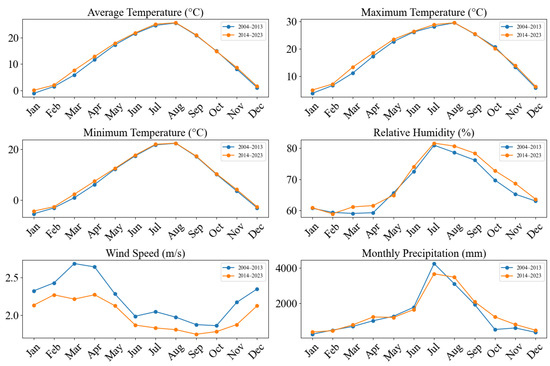 Comparison of monthly climate patterns for the 2004–2013 and 2014–2023 periods.