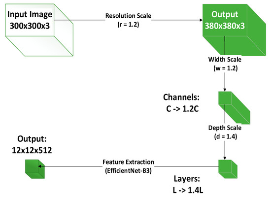 α, β, γ are the base coefficients determined through Neural Architecture Search (NAS). ϕ is a user-defined scaling factor used to control the computational load of the model. d is the depth scaling factor, which increases the number of network layers to enhance the model’s expressive capability; w is the width scaling factor, which increases the number of channels per layer to improve feature extraction ability; r is the resolution scaling factor, which increases the input image resolution to enhance the model’s ability to capture fine details.