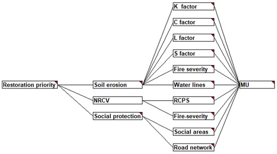 The preliminary set included three criteria—‘Soil Erosion’ (SE), the ‘Natural Recovery Capacity of the Vegetation’ (NRCV), and ‘Social Protection’ (SP) (Table 1)—and six sub-criteria (Table 1).
