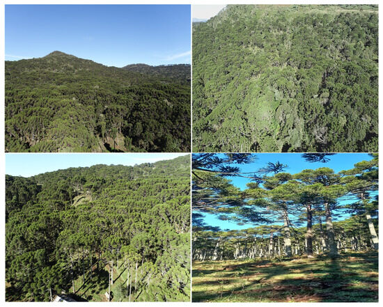 - Hess, A.F.; Demétrio, L.; de Sousa, A.N.; Costa, E.A.; Liesenberg, V.; Biffi, L.J.; Finger, C.A.G.; Borsoi, G.A.; Stepka, T.F.; de Ransoni, J.G.R.L.; et al. Sustainability Assessment of Araucaria Forest Remnants in Southern Brazil: Insights from Traditional Forest Inventory Surveys. Sustainability 2024, 16, 3361. [Google Scholar] [CrossRef]