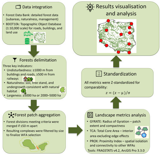 In our study, we applied an extended approach in which anthropopressure was weighed equally with the naturalness of forest ecosystems and the surface of their patches, emphasizing the importance of the functional dimension in designing wild areas. Additionally, we used landscape metrics to assess the potential for biodiversity protection resulting from the structure of forest areas. The proposed method, which incorporates structural and functional evaluation criteria and the development of WFA, provides a robust framework for evaluating wilderness quality. It also corresponds to understanding wild areas as crucial for maintaining the integrity and functionality of ecosystems, as they provide habitat for wildlife and promote resilient landscapes. The method and criteria are universal and could be adapted as a design draft of WFAs. However, the methods proposed here must be verified in the geographical context of the region where they will be applied, especially in terms of forest ownership, data availability, and legal systems.