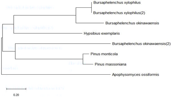 - Zhao, Q.; Hu, L.J.; Wu, X.Q.; Wang, Y.C. A key effector, BxSapB2, plays a role in the pathogenicity of the pine wood nematode Bursaphelenchus xylophilus. For. Pathol. 2020, 50, e12600. [Google Scholar] [CrossRef]
